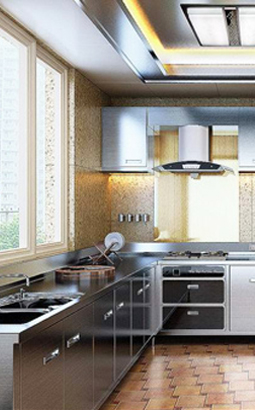 生產(chǎn)不銹鋼整體櫥柜時(shí),要考慮電器、環(huán)境等因素。一起使用的抽油煙機(jī)、微波爐、烤箱,無(wú)論顏色、大小、風(fēng)格,都與櫥柜相搭配、相匹配。